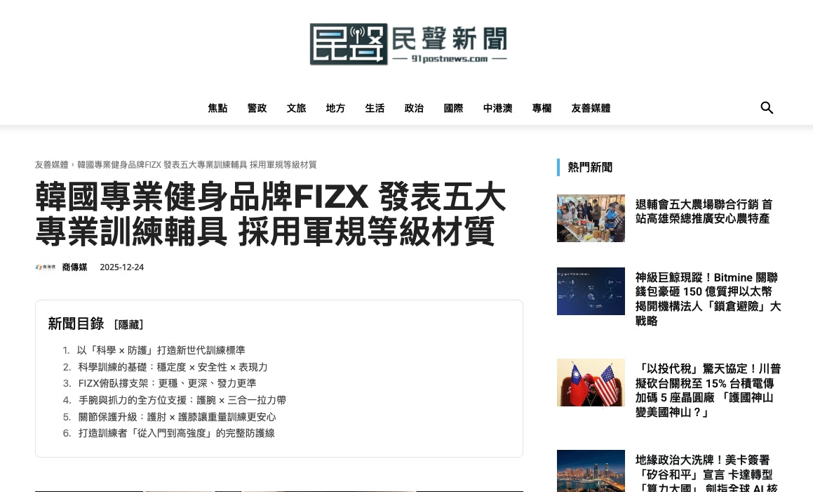 來自韓國的專業健身品牌 FIZX,正式推出五款核心訓練輔具,主打「科學 × 防護 × 表現提升」,產品以人體工學與運動醫學為基礎,結合軍規級高耐用材質,為不同訓練階段的運動者建立更安全穩定的訓練環境。