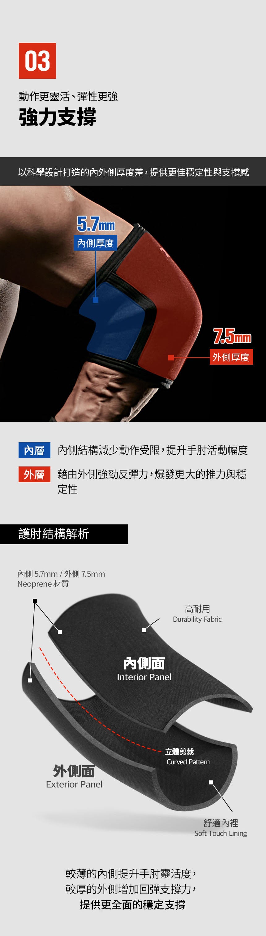 強勁支撐,緊密包覆,提供關節全面支撐,穩定每個動作